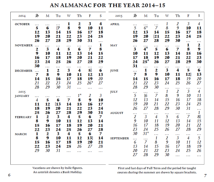 1 October, Wednesday. Michaelmas Term begins. Congregation of the Regent House at 9.30 a.m. (Vice-Chancellor’s address, and election and admission of the Proctors).