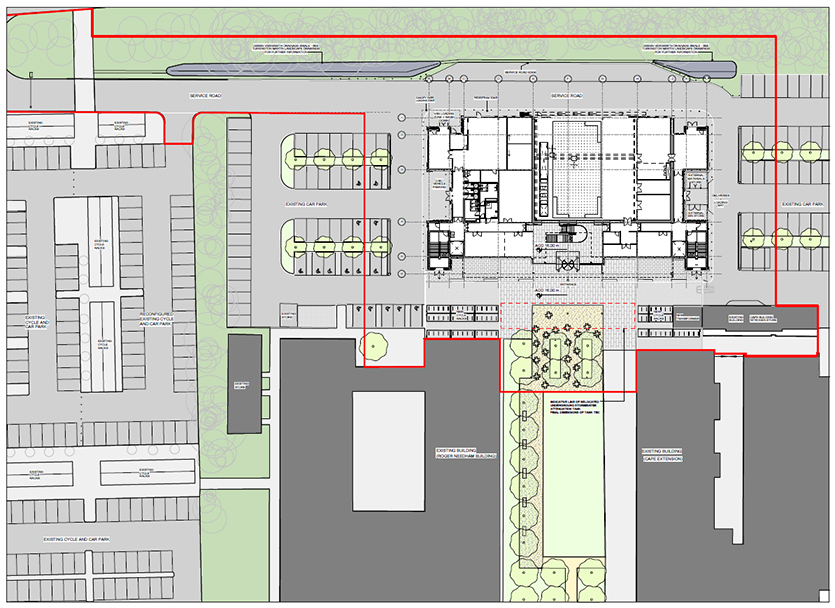 5. The Civil Engineering building will be located behind the Roger Needham and Electrical Engineering buildings on the eastern edge of the West Cambridge site. Recent survey evidence suggests that car parking provision across West Cambridge is under-utilized. With some re‑allocation of spaces within the Park and Cycle area, sufficient car parking exists across West Cambridge to mitigate the loss of spaces associated with the Civil Engineering building and to meet the likely parking requirement of users of the new building. This situation will be kept under review. Ample cycle parking is proposed at the front of the building close to the entrance.
