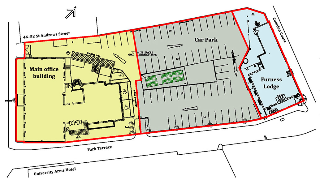 1 Regent Street is a four-storey office building, sited at the front of a rectangular corner plot that extends back along Park Terrace. Behind the main building is an area of surface car parking and at the back of the site is a converted Victorian house known as Furness Lodge. The Estates Strategy Committee has endorsed a proposal to sell Furness Lodge to Emmanuel College, to grant a long lease for the current car park to the same College, and to retain the office building for the University’s operational use or for commercial letting. A plan of the site is shown below. The proposal has been scrutinized and strongly supported by the Finance Committee, and agreed for its part by the Council. The Council is accordingly submitting a Grace to the Regent House (Grace 2, p. 582) for the approval of the proposal.