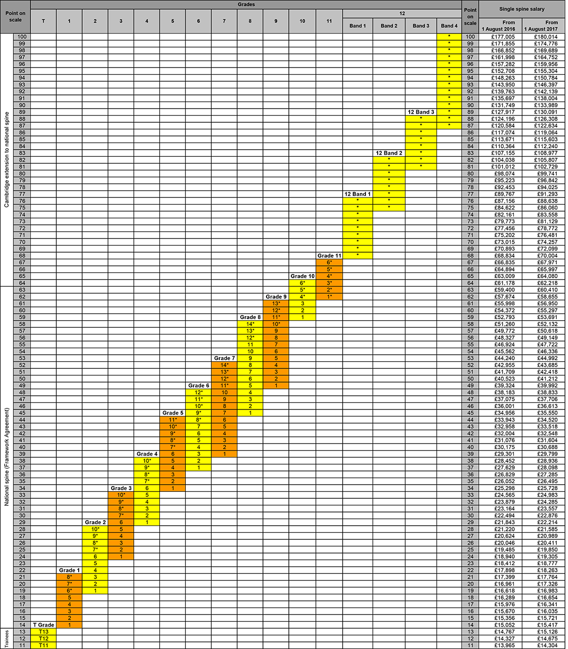 Spine point 13 was removed from the National Spine and the University’s Grade 1 with effect from 1 August 2016. |