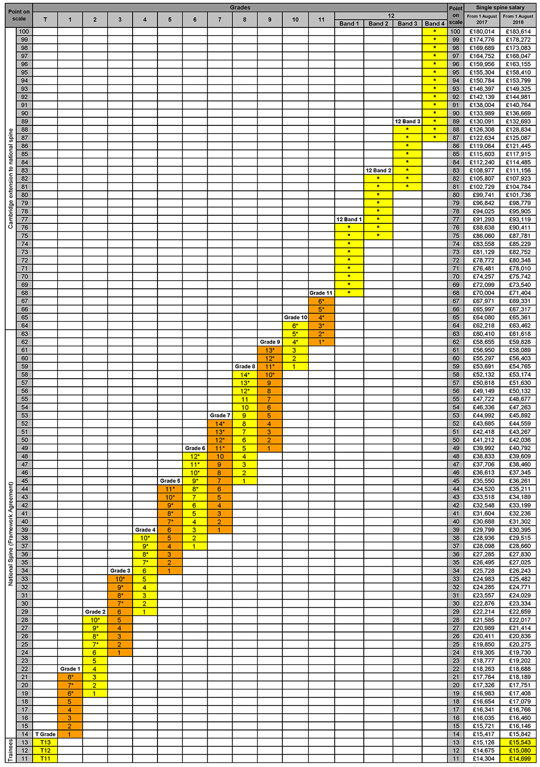 Spine point 13 was removed from the National Spine and the University’s Grade 1 with effect from 1 August 2016. |