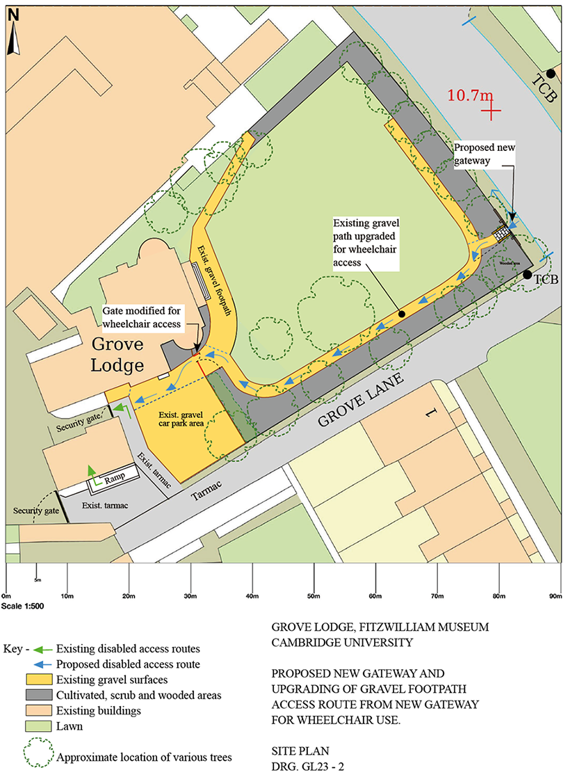 The project will involve removal of a section of railings from the Grove Lodge boundary wall, formation of an opening to the brick boundary wall and installation of a gate to match the existing railings. Listed building consent and planning permission from Cambridge City Council have been granted.