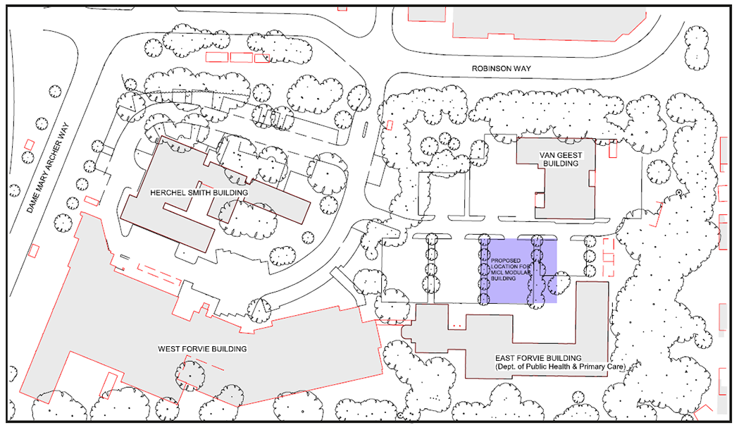 7. A project to develop a ‘Temporary building for the MICL’ was therefore registered with the Planning and Resources Committee (PRC) in February 2024. The plan below shows the expected location of the proposed temporary building.