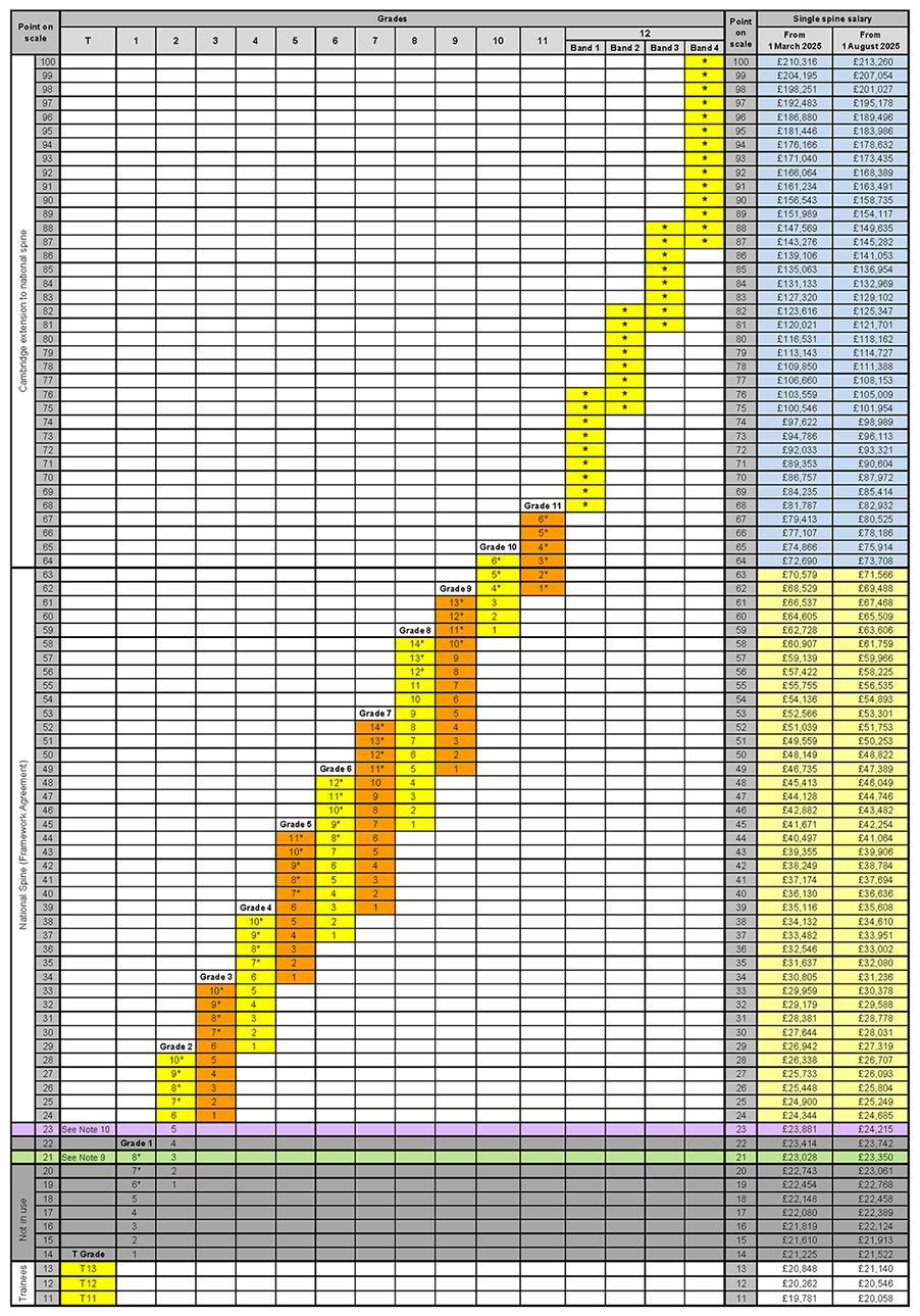 Grade T is for staff who are studying for an approved qualification or undergoing ‘in-service’ training. Points 1–10 of Grade T are no longer in use. |
