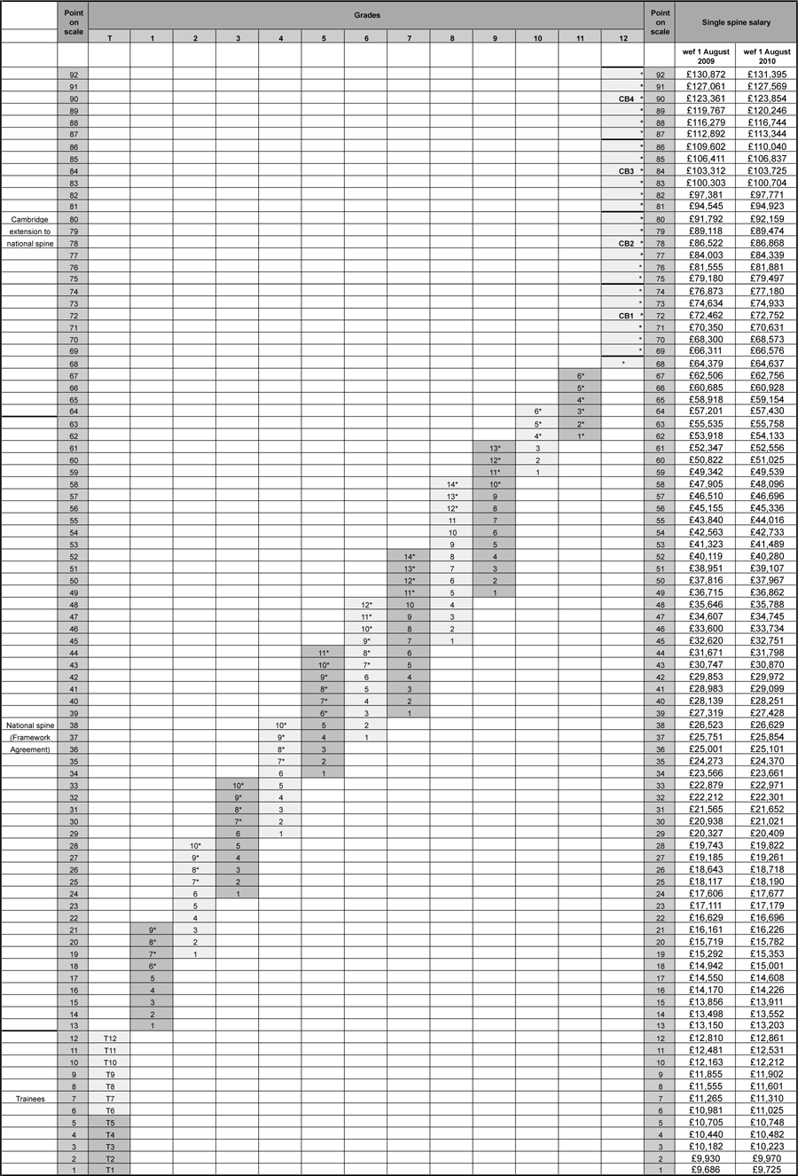 2. The Cambridge general stipend and salary scale for University staff shall be as set out in Schedule I.