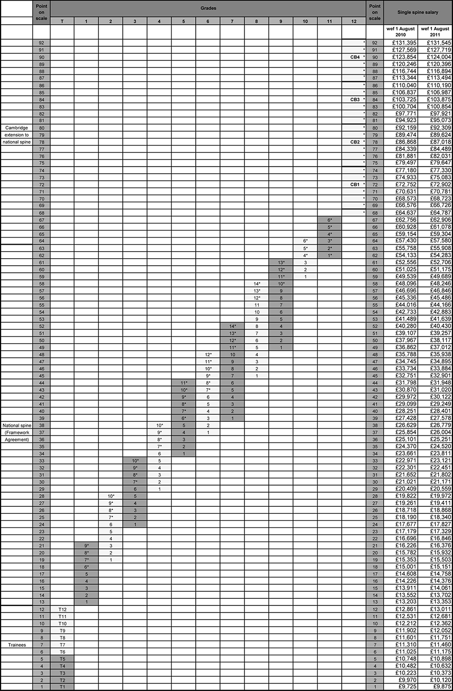 Note 2: Grade T is for staff who are studying for an approved qualification or undergoing ‘in-service' training.
