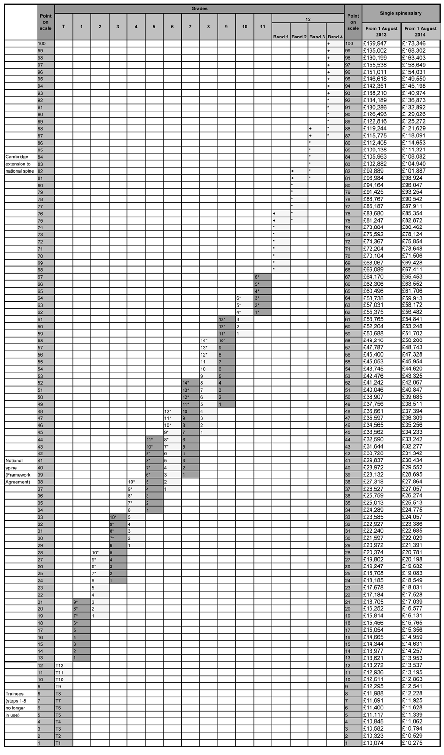 Note 1: An asterisk(*) denotes a contribution point and progress through these is awarded on merit. A plus sign (+) denotes a spine point effective from 1 January 2014.